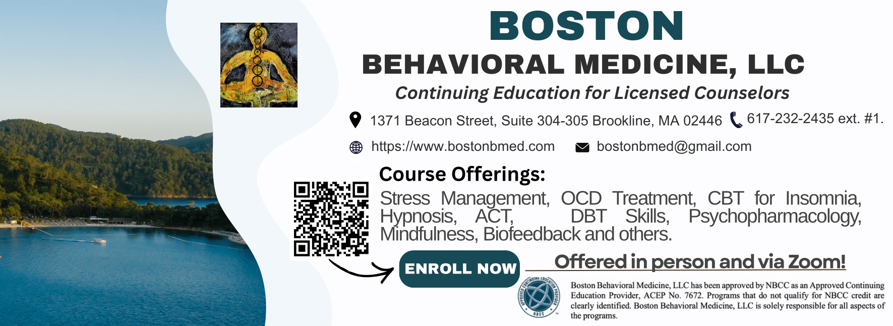NBCC ACEP approval is not required; however, the courses must meet NBCC guidelines for continuing education. A certificate, verification form, or letter verifying attendance is required for documentation. The documentation must include your name, date attended, hours completed, program title, and signature of presenter/provider.